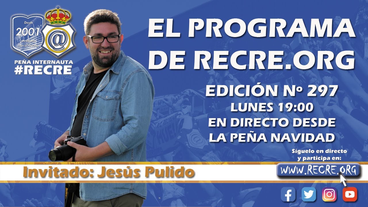 Hoy a las 19:00 horas el periodista Jesús Pulido Pino será el invitado en la edición nº 297 de El Programa de Recre.org. Será la cuarta vez que acuda a nuestro espacio, la primera como exconsejero y ex jefe de prensa y de marketing del Real Club Recreativo de Huelva.