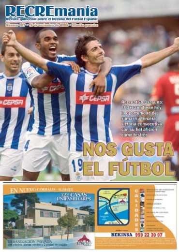 Ya está disponible el número de este fin de semana de la revista Recremanía, que analiza la actualidad del primer equipo del Recreativo, su rival de mañana y de la cantera, centrándose en la previa del encuentro ante el Club Atlético Osasuna pero sin olvidar otros temas que han sido actualidad recientemente como la inauguración de la Ciudad Deportiva Decano del fútbol español. En este número, además, incluye un artículo sobre los calambres musculares.