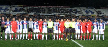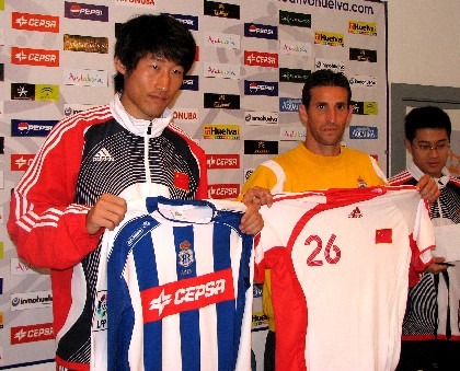 En el plano deportivo Rosu tuvo la primera ocasión del encuentro a los 6 minutos de partido, cuando remató alto desde el área pequeña del meta asiático. Pero no fue hasta el minuto 36 cuando el Recreativo se adelantó en el marcador, al transformar Sinama-Pongolle un penalti cometido sobre él mismo.
