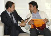 Juan José Cortés entregó una camiseta del Recre a Zapatero