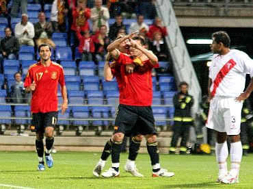 España ha vencido 2-1 en el Nuevo Colombino a Perú, en un encuentro dominado por el combinado local. La selección española, que ha iniciado con este encuentro la serie de dos amistosos previos a la Eurocopa, tuvo la primera primera gran ocasión fue por mediación de Andrés Iniesta, cuyo disparo tras una buena jugada del combinado local se estrelló en la defensa (4'). Siete minutos más tarde, un disparo de Xavi Hernández rebotó en el portero visitante y luego se estrelló en uno de los palos.