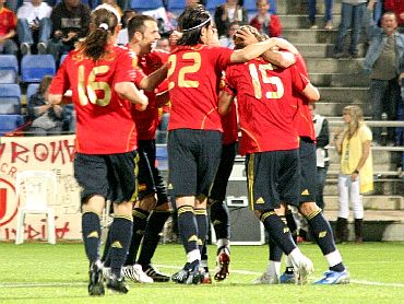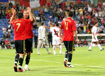 ESPAÑA: Iker Casillas; Sergio Ramos, Puyol, Marchena, Capdevila; Iniesta (Cazorla, 62'), Xabi Alonso (Senna, 46'), Xavi (Fábregas, 46'), Silva (Sergio García, 85'); Villa (De la Red, 58') y Fernando Torres (Güiza, 46').