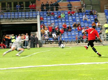 A falta de diez minutos para el final, fue Cazorla el que probó al portero rival con un disparo cruzado en el área que se fue a córner. Tras éste, otro, en el que Sergio Ramos no acertó a cabecear libre de marca en la frontal del área pequeña. El mejor de España en el tramo final y el más jaleado desde la grada estaba claro quien era: Cazorla. El asturiano se marcó luego una jugada individual y se plantó en el área. Su disparo, demasiado cruzado, fue fuera (83'). Luego, la entrada al terreno de juego de Sergio García, otro debutante, desplazó a Cazorla a un lugar donde también se desenvuelve a la perfección, la banda izquierda. Todo eso, en una noche en la que saltaron dos espontáneos a buscar la portería de Iker Casillas, a pesar del cordón preparado para que no se volviera a repetir la invasión de campo del partido entre el Decano y el Valladolid, y de los avisos de apercibimiento de sanción. El partido parecía estar condenado a acabar en empate, pero Capdevila enganchó con la pierna derecha un buen centro de Cesc Fábregas y, en la recuperación de tiempo perdido, hizo el 2-1 definitivo.