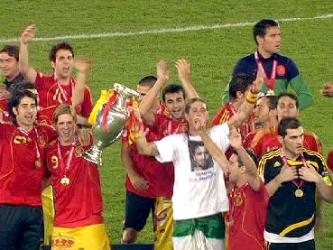 La selección española absoluta de fútbol se ha proclamado campeona de Europa tras vencer 0-1 a Alemania en la final del campeonato celebrado durante este mes en Austria y Suiza, gracias a un tanto de Fernando Torres. En este partido, en el que hubo representación de aficionados del Recreativo en las gradas, actuaron dos ex recreativistas: Cazorla, que sustituyó a David Silva, y Daniel González Güiza, que salió por Fernando Torres, también en la segunda parte. El encuentro significaba también el adiós de otro antiguo jugador del Decano al frente de la selección española: Luis Aragonés.
