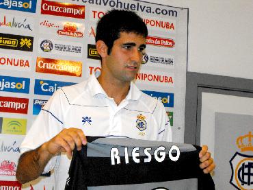 Esta tarde ha sido presentado el portero del Recreativo cedido por la Real Sociedad Asier Riesgo, que como recordó el presidente "lleva ya unos días en Huelva. La Real Sociedad está inmersa en un concurso, como varios equipos españoles. Hasta las dos o tres de la tarde no nos llegó el OK definitivo de los que regentan concursalmente el club. Por parte del presidente ya teníamos el visto bueno. Hemos presentado ahora al jugador para que esta tarde está a disposición del entrenador".