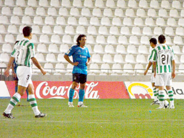 Poco después hubo una falta cercana al área visitante. Josemi envió sobre Núñez en una jugada, sin duda ensayada, pero el balón se fue ligeramente alto. Quien sí sacó fruto a una falta a similar distancia, pero ante la meta local, fue Miguel que, de cabeza, puso por delante a los suyos en el marcador.