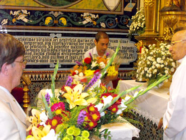 El presidente, Francisco Mendoza, y el capitán, Aitor Tornavaca, depositaron sendos ramos de flores en el tradicional acto religioso