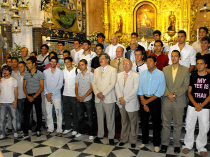 Tras el entrenamiento matinal de hoy miércoles, todos los estamentos del club han pasado a primera hora de la tarde por el Santuario de Nuestra Señora de la Cinta, Patrona de Huelva, para la tradicional ofrenda floral que se realiza antes de cada temporada. El acto ha estado oficiado por el capellán del club, D. Antonio Bueno, que más allá de tópicos como el de pedir que la Virgen interceda para que no se den lesiones durante la campaña, ha querido pedirle a los jugadores que, como cristianos, entrenen además de sus facultades físicas la parte espiritural, el alma, y busquen como objetivo el de santificarse, y ha destacado también las palabras del Papa acerca de la juventud, ya que considera a los futbolistas un ejemplo para los jóvenes. También recordó a los futbolistas llegados al Decano procedentes de diferentes partes del mundo que la Virgen María es la misma, independientemente de la advocación de sus lugares de origen. Autor: recre.orgOpina sobre esta noticiaLee las opiniones de los visitantes sobre esta noticia