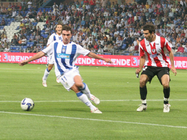 Javi Guerrero, novedad en el once del Recre junto a Sisi, adelantó al Decano. David López empató cinco minutos después del tanto del Recre para el Athletic