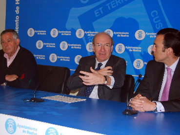 El autor de la obra estuvo junto al alcalde de Huelva y el presidente del Recre