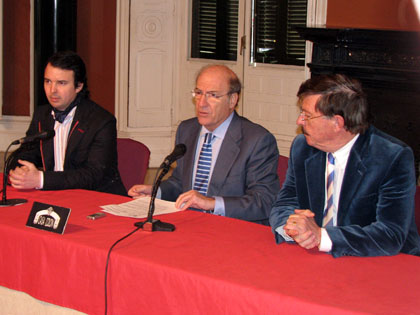 El alcalde de Huelva, Pedro Rodríguez; el presidente del Recreativo, Francisco Mendoza, y el escultor Elías Rodríguez Picón, presentaron esta mañana el monumento al primer presidente del Decano, Charles Adam, que mañana se inaugurará en los jardines delanteros de la Casa Colón. El Alcalde ha agradecido al Decano la cesión de este monumento a la ciudad y ha felicitado a Rodríguez Picón por un trabajo que se ha presentado muy complicado, ya que de este personaje tan solo existía una fotografía. “Con cosas como estas se hace ciudad, Huelva necesita de rincones para que los ciudadanos conozcan sus historia y sus raíces, para que los onubenses sientan que aquí se fundó el Recreativo y conozcan al primer presidente”, ha subrayado el primer edil.