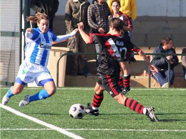 Sporting Club y Rayo Vallecano se repartieron los puntos en un encuentro poco vistoso y que no respondió a las expectativas que había despertado. la primera mitad fue muy trabada y la mayor parte del tiempo el juego transcurrió en el centro del campo. las sportinguistas trataban de apuntalar su defensa y tratar de salir a la contra pero la transición de juego se veía abortada por la falta de precisión en el pase o la superioridad defensiva visitante, ya que Sandrita y Dayane aparecían muy aisladas en la zona de ataque. Las dos guardametas tuvieron que intervenir en escasas ocasiones aunque mediado este periodo las vallecanas empezaron a poner cerco al área rival y sobre todo en lanzamientos de corner y faltas crearon cierta inquietud en la meta defendidad por Thais, aunque la defensa resolvió con acierto.