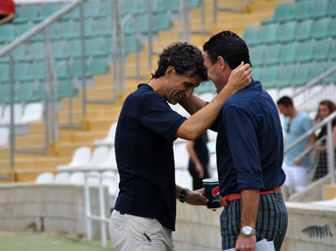 - Alfonso Serrano y Pablo Fernández Longoria, integrantes de la dirección deportiva, también estuvieron en Elche, y conversaron con Manuel Pedraza antes del encuentro.