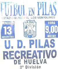 Esta noche a las 21:00 se enfrenta al Recre a la U.D. Pilas en la localidad limítrofe a nuestra provincia, en un partido de pretemporada ya habitual desde el traspaso del ya ex-recreativista Jero al filial onubense procedente de la U.D. Pilas, equipo de la regional preferente de la provincia de Sevilla.