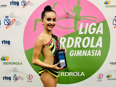En jornada de tarde daba lugar la competición individual donde el club solo era representado por la benjamín Alejandra González, que defendería dos ejercicio, manos libres y pelota, la gimnasta que pese a su juventud ya ha dado varias alegrías al club, no decepciono y una vez más sobresalió, Alejandra consiguió el diploma de la competición después realizar un majestuoso ejercicio de pelota que le dio la séptima posición. Además la gimnasta defendió unas preciosas manos libres, la suma de sus dos ejercicios le daba una excelente sexta plaza en la general y por si fuera poco, las dos notas de sus ejercicios sumaron para proclamarse campeona de España por autonomía, sin duda el mejor broche de oro para cerrar la presencia del GR Huelva en esta competición.