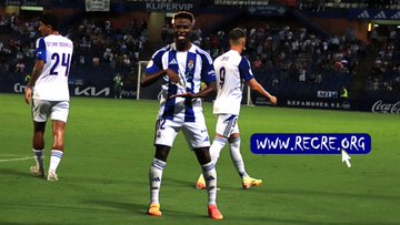 (19:38) RECRE: Rubén; Perejón, Gálvez, Serrano, A. López; César Moreno, Del Pozo; Njalla, Domínguez, Alcalde; y Caye. Suplentes: Centurión, Keita, Paolo, Armero, Caballero, Zelu, Becken, Camará, Navas, Soto y Davinchi