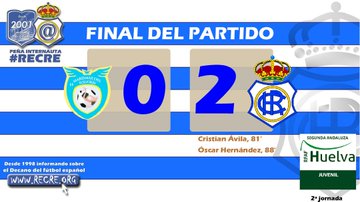RECRE JUVENIL B: José Ramón Domínguez, Fernando Maya, Carlos Moreno, Alejandro Fernández, Andrés Jesús García, Francisco José Rodríguez, Rubén Pérez, Ezequiel Jiménez, Óscar Hernández, Cristian Ávila y Amandio González. Suplentes: Javier Barrero, Manuel Vázquez, Aitor Polo, Luis Matito, Idriss González, Rubén Vázquez y Lorenzo Jurado.